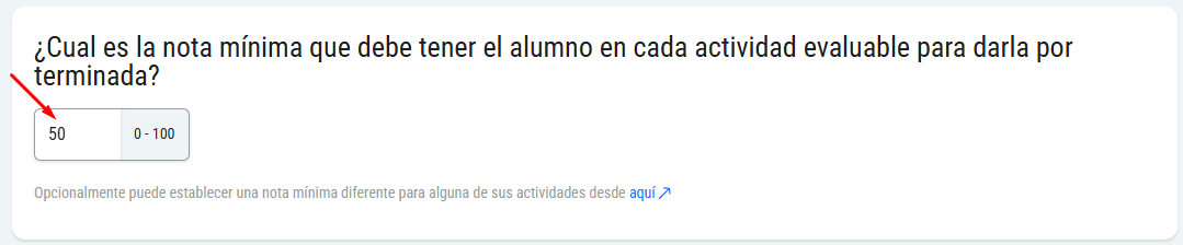 Si se elimina la nota mínima, se podrá avanzar en el temario independientemente de si el ejercicio ha sido corregido por el profesor o no.