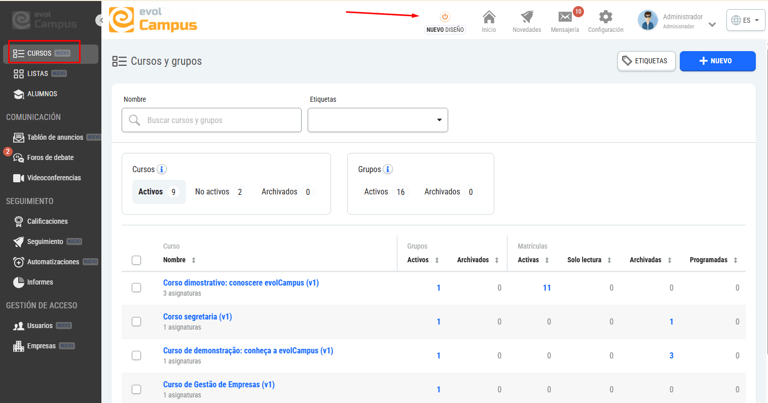 Os recomendamos que, si no lo habéis hecho todavía, activéis el Nuevo Diseño para ir familiarizándoos con las nuevas pantallas que ya están disponibles y disfrutar de una versión mejorada de la plataforma.