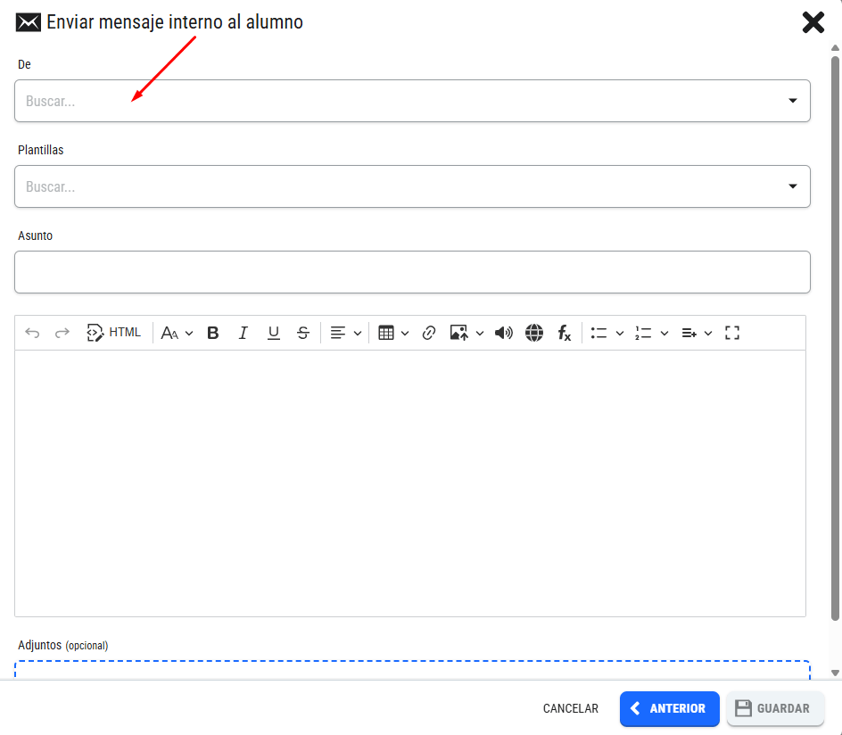 Donde podemos concretar el porcentaje de asistencia que se tendrá en cuenta a la hora de enviar un mensaje cuando algún alumno cumpla la condición: