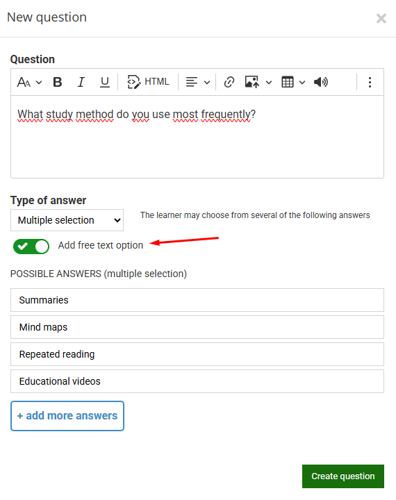 To do this, simply select “Add free text option”:
