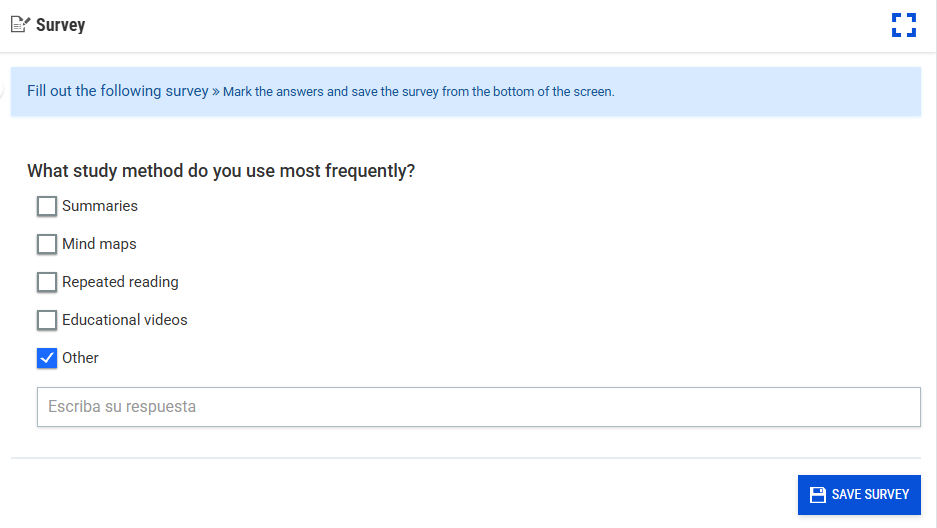 There are times when, while creating a survey, it is necessary to give students the option to include an open-ended response alongside several predefined answers.