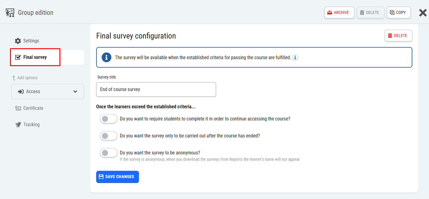 Just like the surveys that are part of the content of a course: